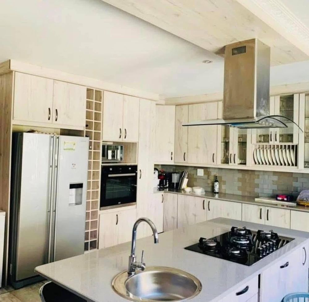 The modern open-plan kitchen is a haven for culinary enthusiasts, boasting top-of-the-line appliances, a well-sized scullery, and an informal dining area that bathes in natural sunlight. This space is perfect for creating gourmet meals and hosting casual gatherings with friends and family.