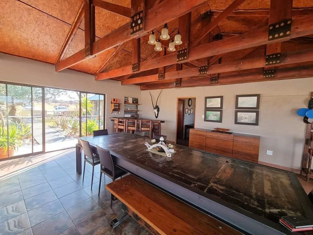 The property also features a lodge, complete with a walk-in safe and study, one family unit with two bedrooms and two en-suite bathrooms, four rooms with en-suite bathrooms (shower/WC/basin) and walk-in closets, one kitchen and main area, a swimming pool with wooden decks, an outside BBQ and Boma, three store rooms, a 6m shipping container, wooden pole carport and a well-maintained garden.
