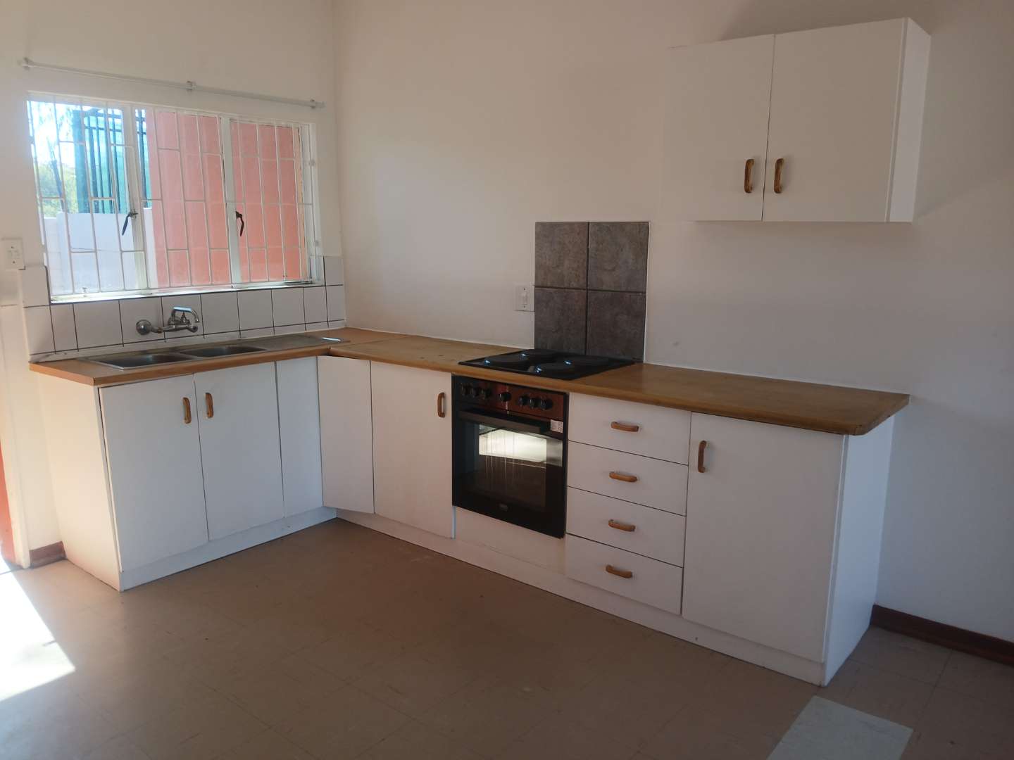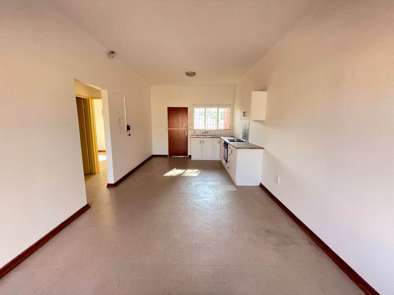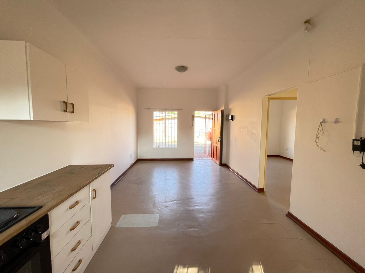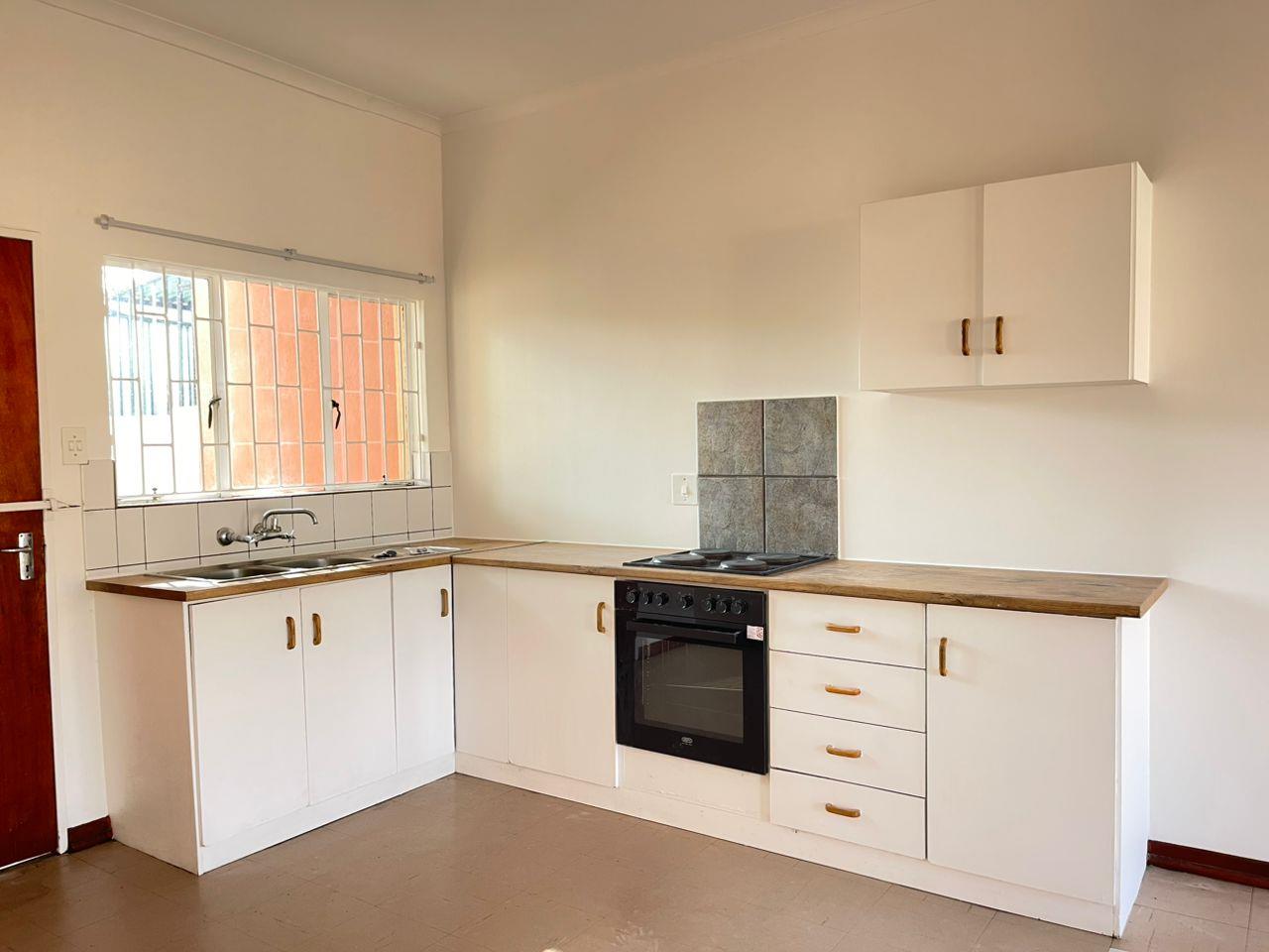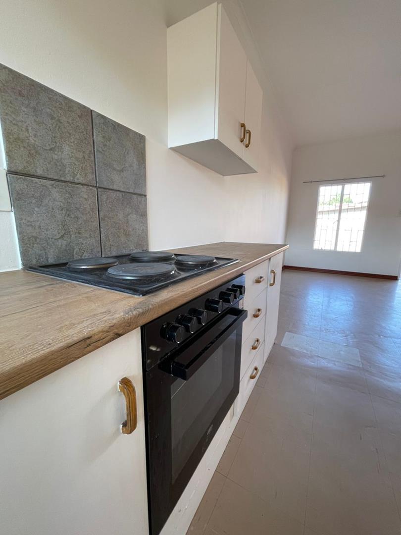 The heart of the home is the open-plan living area, seamlessly connected to a modern kitchen. The kitchen boasts a built-in stove and plenty of cupboard space, making it ideal for both everyday meals and entertaining guests.