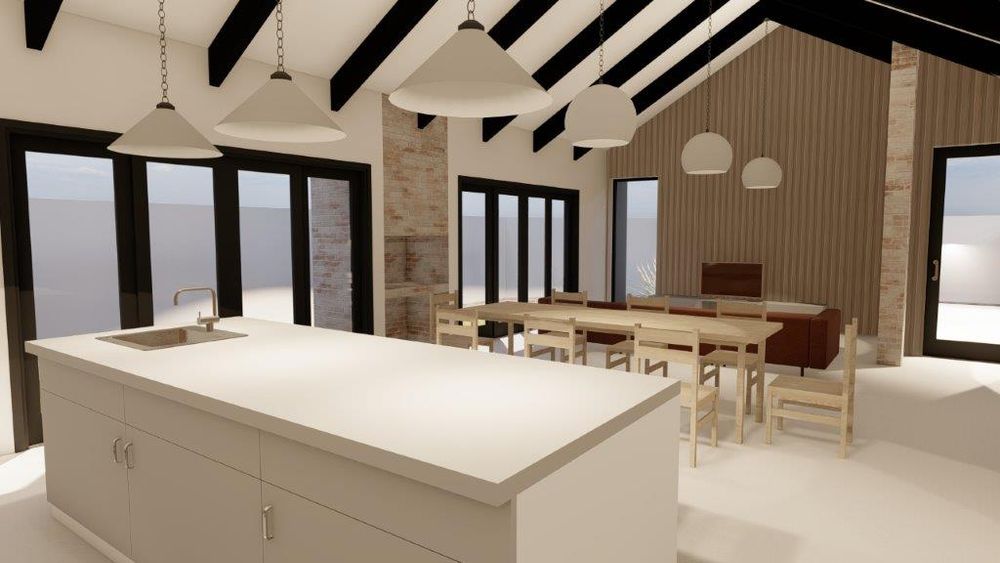 Modern Open Plan Kitchen with Living Area