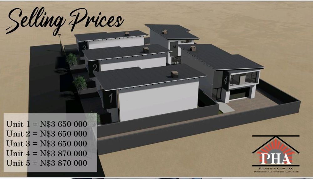 Discover the exquisite Desert Pearl 2, a newly unveiled development by PHA Property, nestled in the serene and picturesque neighborhood of Kramersdorf. With only four of the five exclusive units remaining, this is a rare opportunity to own a truly unique gem. Prices start from N$3,650,000.
