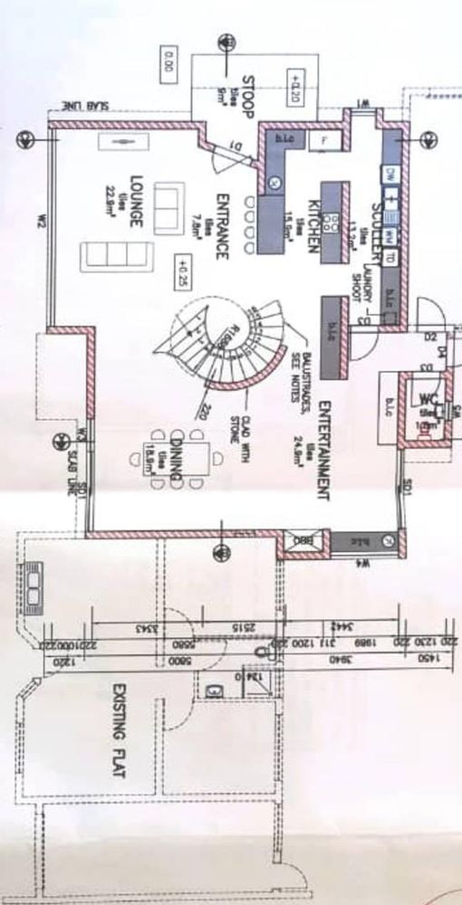 Incomplete freestanding home with completed 2 bedroom 1 bathroom flat. Approves Plans available. Foundation and some boudary walls already in place.