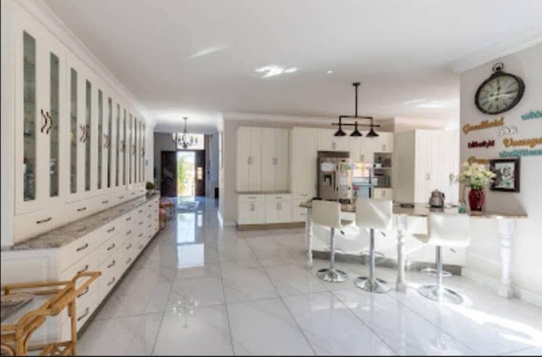 The modern open-plan kitchen is a haven for culinary enthusiasts, boasting top-of-the-line appliances, a well-sized scullery, and an informal dining area that bathes in natural sunlight. This space is perfect for creating gourmet meals and hosting casual gatherings with friends and family.