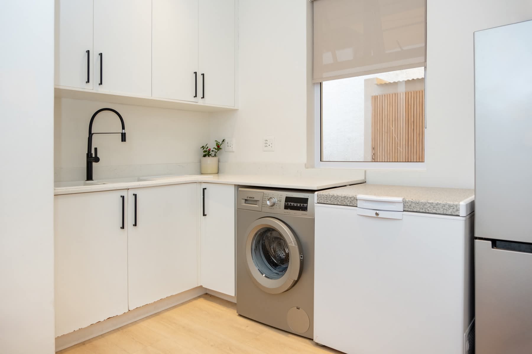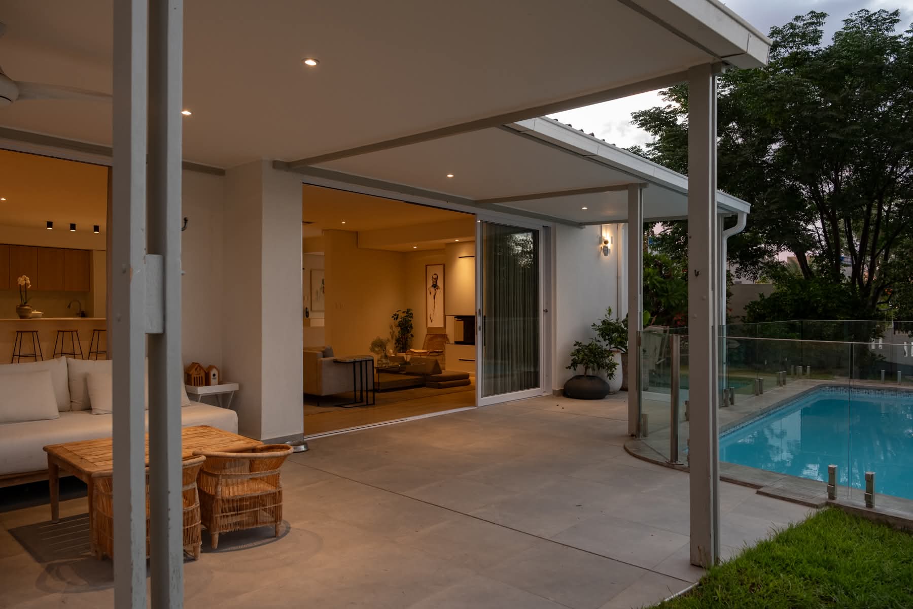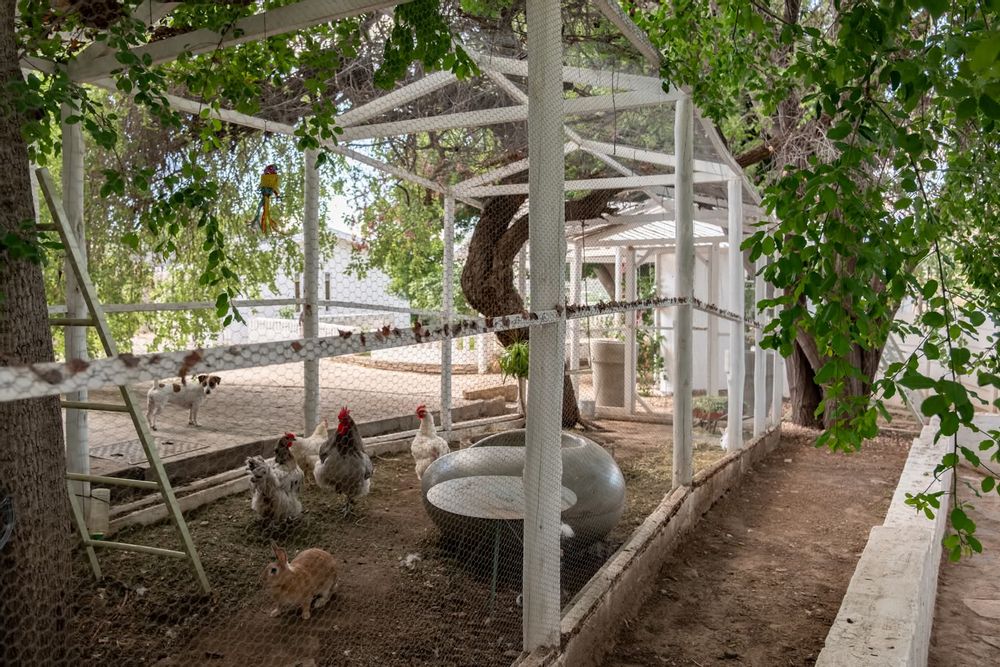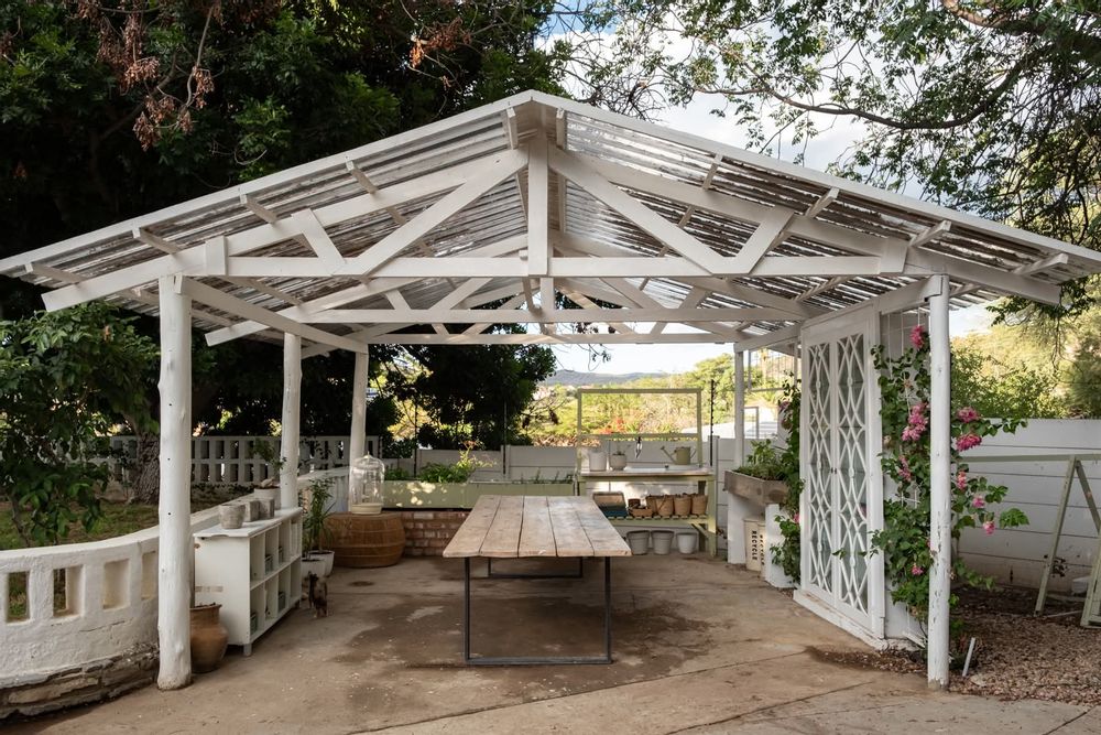 The outdoor spaces are equally impressive, offering a large pool with a frameless glass fence and a cozy fire pit. Relax in the established citrus orchard or tend to your plants in the garden/potting shed. Additional features include a chicken coop, outside storage, garden storage, and an app-controlled irrigation system for easy maintenance. The property also includes a versatile bachelor flat/gym that can be converted into a double garage, as well as shaded parking.