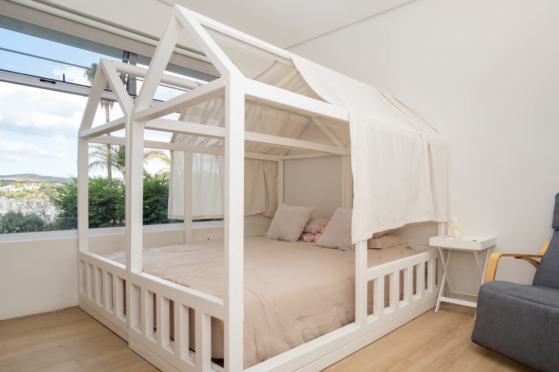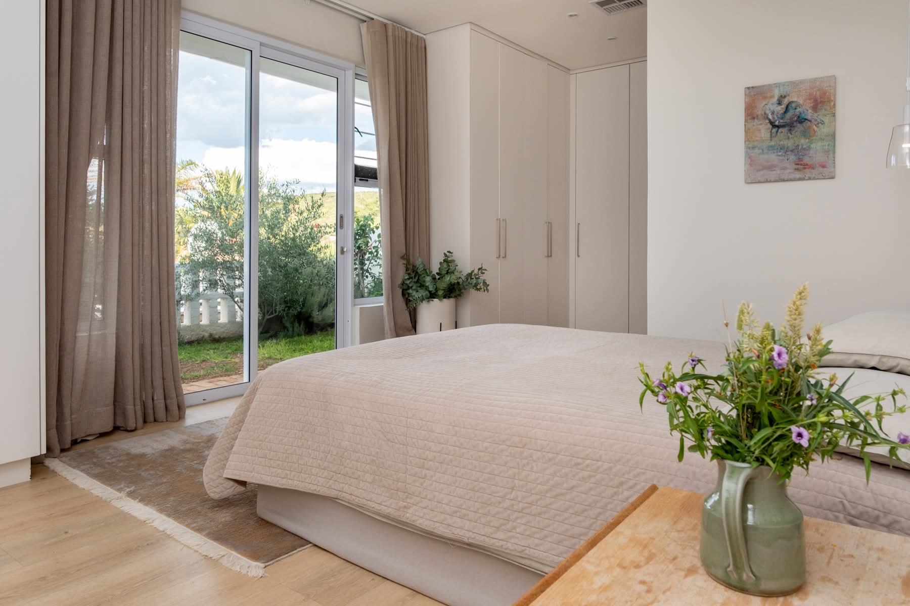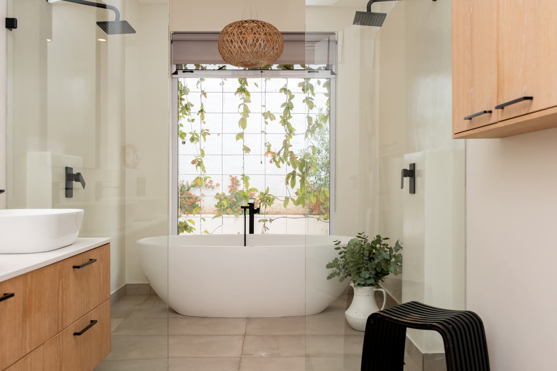 Step inside to discover a spacious and elegant interior featuring four bedrooms and three bathrooms. The open-plan kitchen, living, and dining area is perfect for entertaining, anchored by a stunning German designer kitchen. Enjoy the warmth of a large glass fireplace and the convenience of a central air cooler system. The solid oak pivot front door and exquisite oak kitchen and bathroom interiors add a touch of sophistication. The home also features German vinyl flooring, a scullery, and a laundry room.