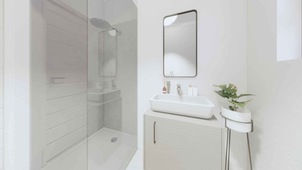 โ A modern bathroom featuring a sleek shower